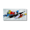 A virtuous splash of vibrant colors and black on а white and grey background. Powerful abstract art process that displays a girl furiously driving a motorcycle. An abstract that also leaves room for thinking and interpretation.