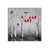 This painting a masterful effort to create a moment of peace while still keeping the realistic autumn feeling of nature. In a wonderful way, the few tree's leaves glow a charming red color in the predominant white background giving contrast that looks astounding.