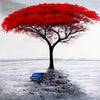 There is so much soul and peace in this lovely canvas landscape art painting. The magical landscape is consisted of huge red tree and peaceful blue bench that is awaiting your imagination.