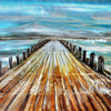 A depiction of man's solitary journey in life. The wooden, probably damp, bridge challenges you to walk barefoot, as you chase the dream that might be waiting for you at the end of your way. Wood and sea make an excellent visual combination that pushes the forward, to what's about to come.
