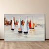 Sailing is freedom, especially in this marvelous landscape of sail boats with in front of a coastal city. Pick between two shapes of masterful modern sea inspired art.