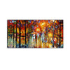 Inspiring and breathtaking moment of love displayed in vibrant, bright and colorful manner. Stunning art piece of two lovers walking under one umbrella at night while walking in the city park. Pure expression of the power of love in these modern, intense and stressful times.The passionate reds mix with the calming blues, describing a relationship that has it all and walks down a multi-colored path (oil paint on canvas )