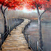Mixing a hue of intentionally bland colours to display a foggy road and contrasting clear and rich red leaves to add tone, The Road of Salvation is an expressive landscape that is sure to impress.