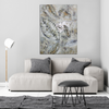 Almost hidden in the play of colors filled of grey, white and brown are the secret leaves. A deep abstract painting with texture & shadows that'll impress anyone.