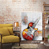 A fabulous guitar painting for the passionate music fans. Play It Again, Rock is a jaw-dropping gorgeous hand painted masterpiece for the urban artistic souls. Signs of a brick background and grey wall are giving the painting an interesting, classic dimension.