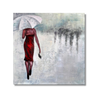 Powerful figurine of a woman in love headed to meet her lover in a rainy night. Thick layers of grey and dark tones are contrasted by the white umbrella and the red dress of the gorgeous woman. A fine art piece that can be a romantic and soulful addition to your space.