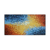 Masterful abstract art formed from blend of blue, yellow, and brown. Built up from many many layers of acrylic paint added thickly to create a glaze of glass effect.
