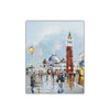 Excellent masterpiece for the ones adoring city landscapes and figurative art with dark and thick color play. This astounding street art piece is showcasing the beauty of the night walk in an unknown city.