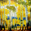 A stunning yellow tree landscape abstract painting. With its intense detailing, glimpse of blue sky and dominating color of nature, it brings soul and peace wherever displayed.